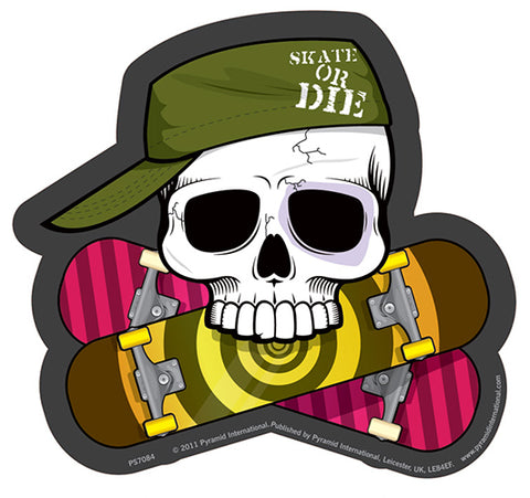 Skullduggery Skate Or Die Shaped 9cm Vinyl Sticker